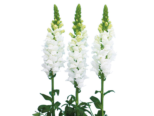 ホワイトキングの改良中生種。開花は少し遅れますが、純白大輪で花弁厚く、花穂のつまりも良く、ボリュームを追求した品種です。